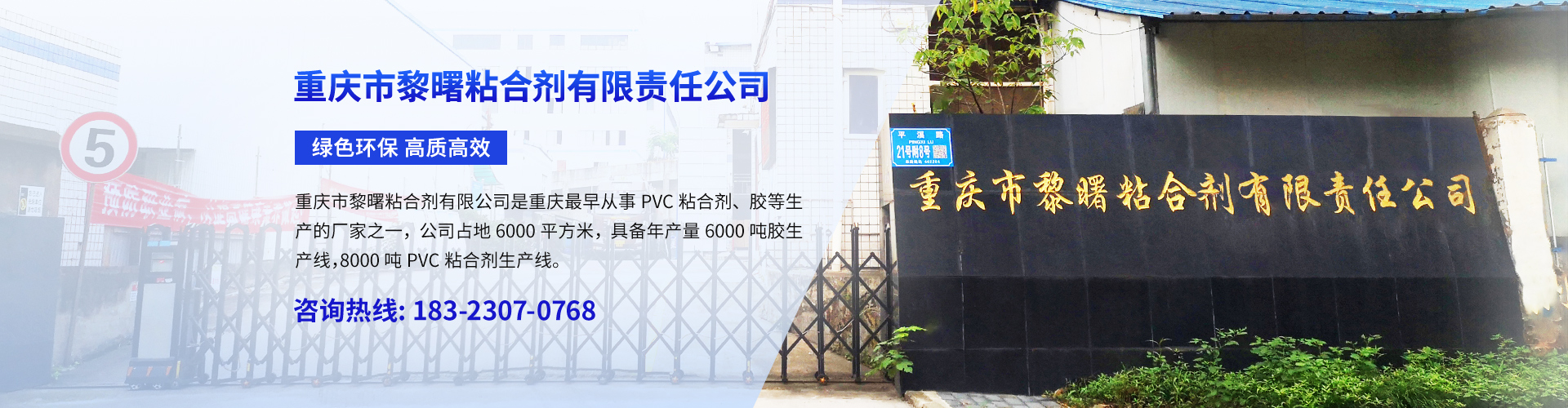 重慶市黎曙粘合劑有限責任公司創始于2008年,是重慶專業從事PVC粘合劑的生產廠家之一,是重慶一家取得有生產許可資質的廠家。公司占地面積6000平方米,擁有總資產2000余萬元,技術力量雄厚,擁有高級技術研發團隊。現具備年生產量6000噸PVC粘合劑生產線及年生產量8000噸水性裱糊膠、黃膠、搭口膠生產線。